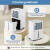 ● Easy Drainage & Movement: This dehumidifier is equipped with a 1.1 gallon removable water tank for manual drainage and a 3.3 ft drain hose for continuous drainage. The water full alarm and auto shut off function ensure worry-free operation. Besides, the mobility is enhanced by 2 side handles and 4 universal casters.