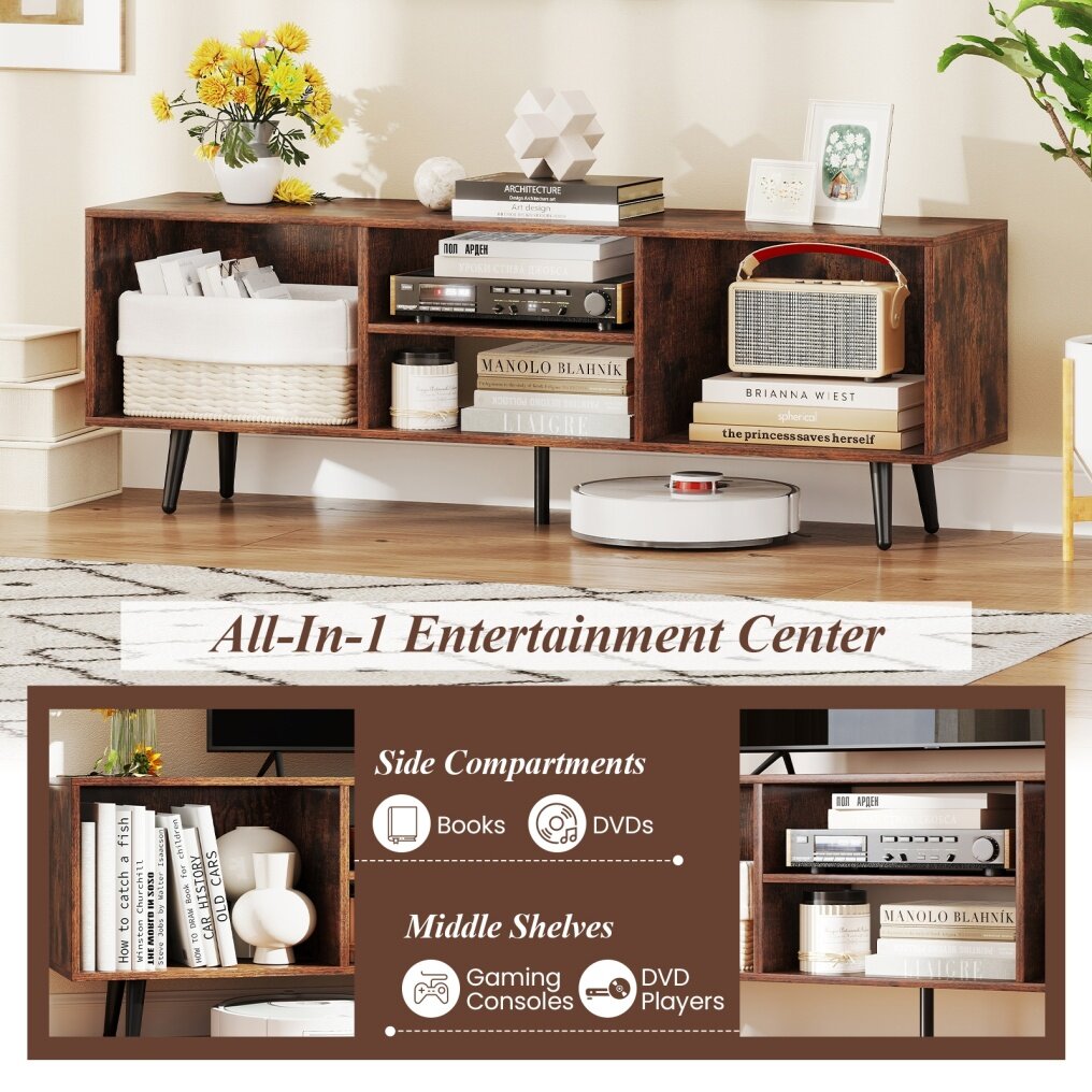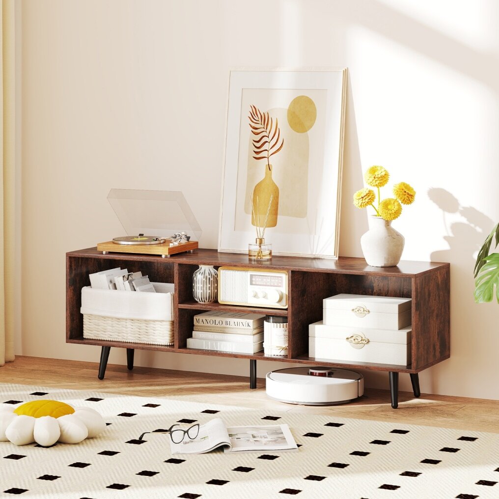 ● Solid Foundation for Stability: Built with strength in mind, the TV cabinet comes with 5 robust metal legs that ensure a substantial load capacity of 198 lbs. Moreover, this cabinet is equipped with protective foot pads for great floor protection.