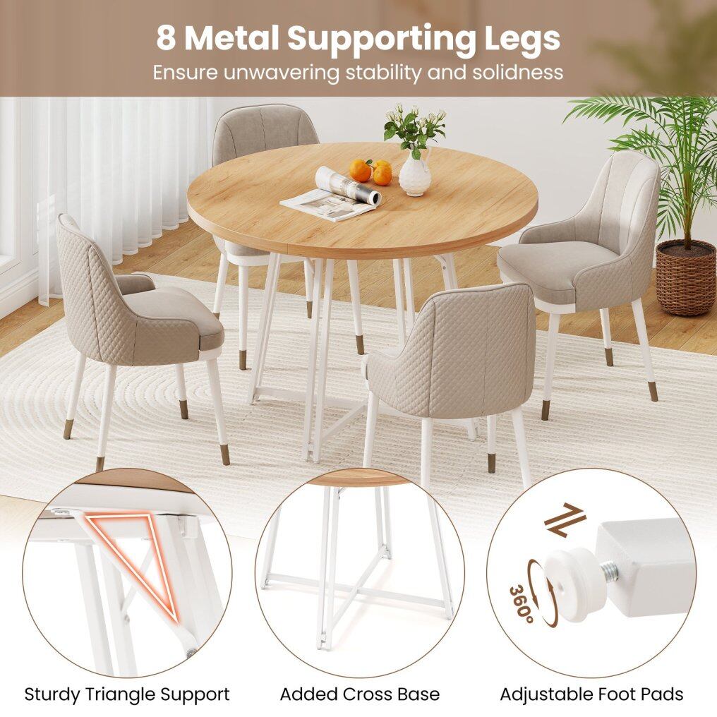 ● Stable 8 Metal Legs: In contrast to a traditional dining table with 4 legs, our design boasts 8 metal legs equipped with adjustable foot pads to accommodate uneven surfaces. Plus, the cross-base design not only boosts the table's stability but also provides ample legroom.