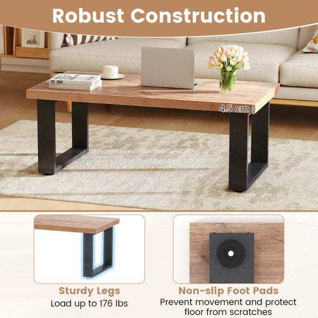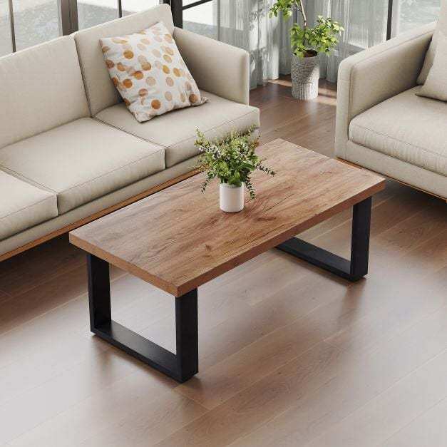 ● Rustic-Modern Style: Rustic wood grain meets a matte-black frame on this modern coffee table, creating farmhouse charm that complements any decoration style. The simple yet stylish design makes the rectangle coffee table a stylish focal point in contemporary or traditional spaces.