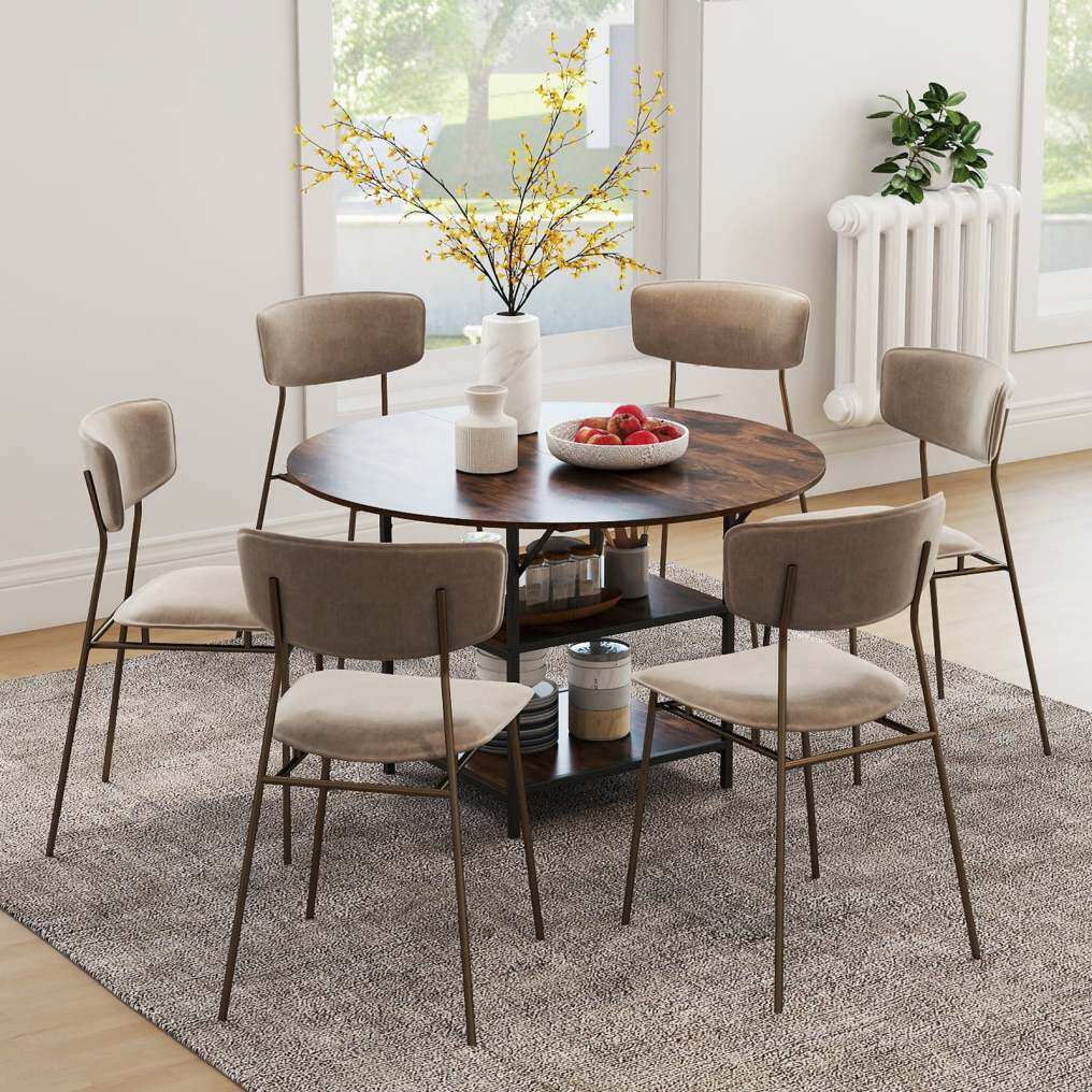 ● Spacious for 4-6 Person: Featuring a 47" round top, the dining table offers an expansive area perfect for hosting intimate meals. The dining room table can comfortably seat 4 to 6 people, which suits everyday use as well as special occasions.