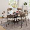● Exquisite Details: Boasting a easy-to-maintain veneer, the dining table for 6 is simple to keep spotless after meals. Moreover, rounded corners enhance safety for users, while protective pads on the feet safeguard your floors and maintain stability.