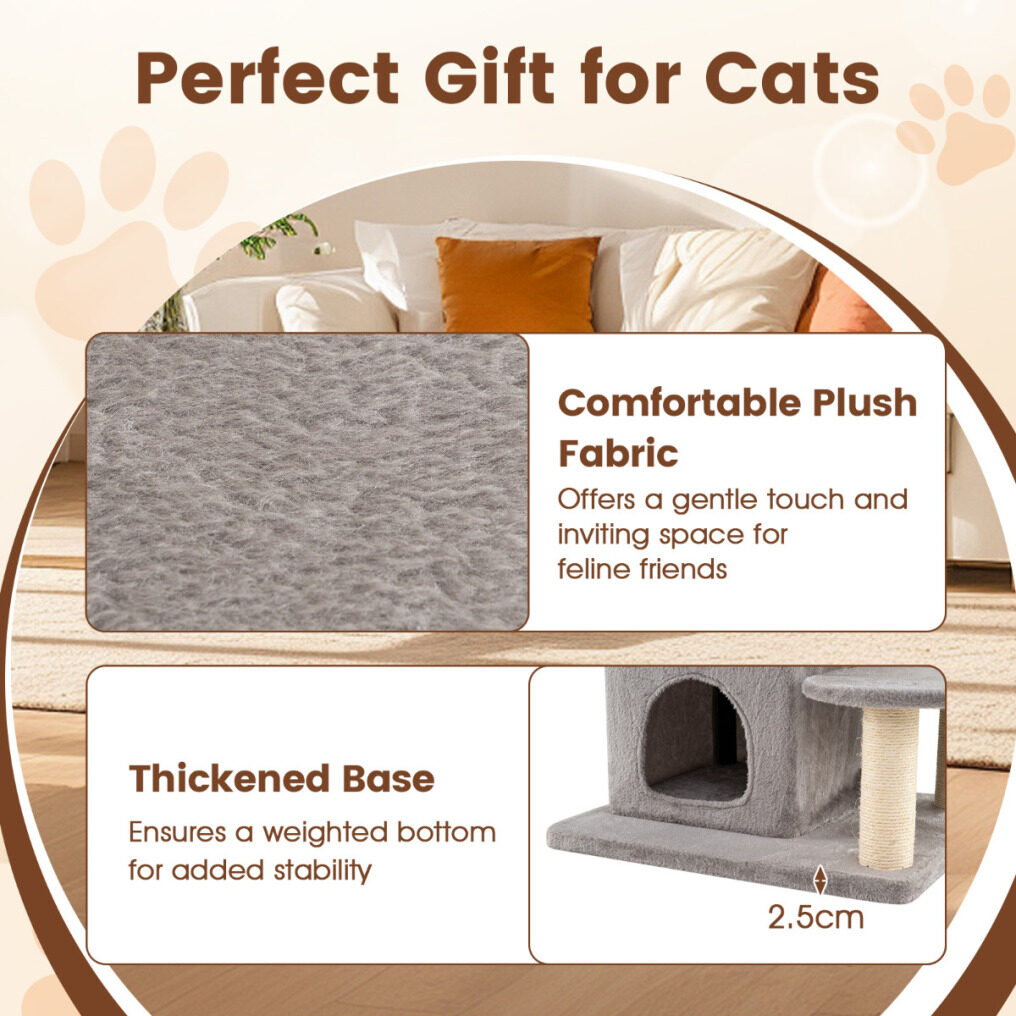 ● Sturdy Base & Superior Comfort: Featuring a 1"/2.5 cm thick base, the cat playground prevents wobbling during vigorous play. Additionally, the soft plush fabric covers every surface, creating a warm, inviting space for your cats to rest.