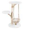 ● Unique Handcrafted Cradle: This solid wood cat tree comes with a comfy cradle that rocks gently to soothe your beloved pet, perfect for curling up and napping. It is intricately woven with ropes, bolstered by a sturdy plywood panel and a soft cushion.