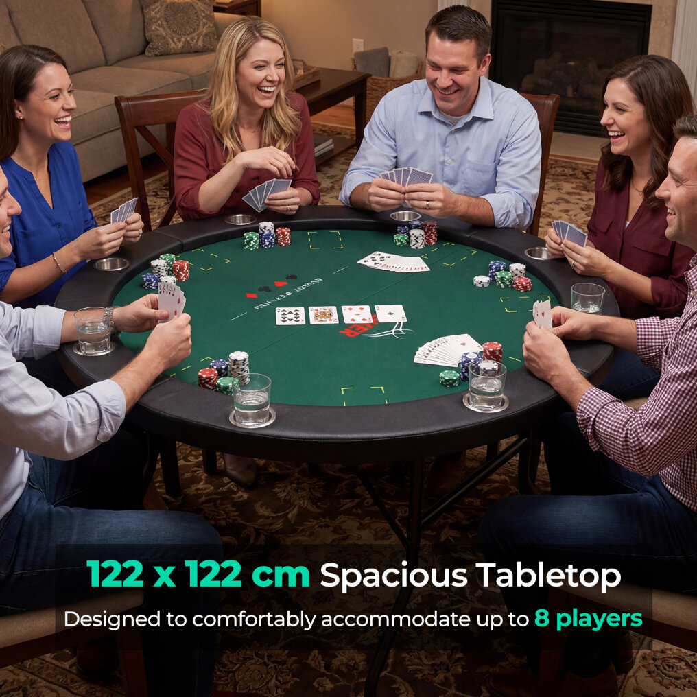 ● Spacious Poker Table: Featuring a generous 48" x 48" playing tabletop, this poker table provides ample space for each player, ensuring a comfortable gaming experience. Plus, it is designed to comfortably accommodate up to 6-8 players, making it ideal for games like blackjack, Texas Hold'em, or other card games.