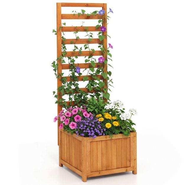 Functional 2-in-1 design: The combination of planter box and integrated trellis makes this wooden raised bed perfect for growing various plants, including vegetables, flowers, and fruits. The trellis also provides an ideal area for climbing plants or decorative accents.