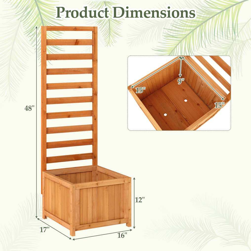Versatile applications: The raised bed planter with trellis fulfills several functions, e.g., as a privacy screen to conceal unsightly outdoor objects or as a plant support for climbing plants. Furthermore, the planter box also serves as a decorative container for your favorite potted plants.