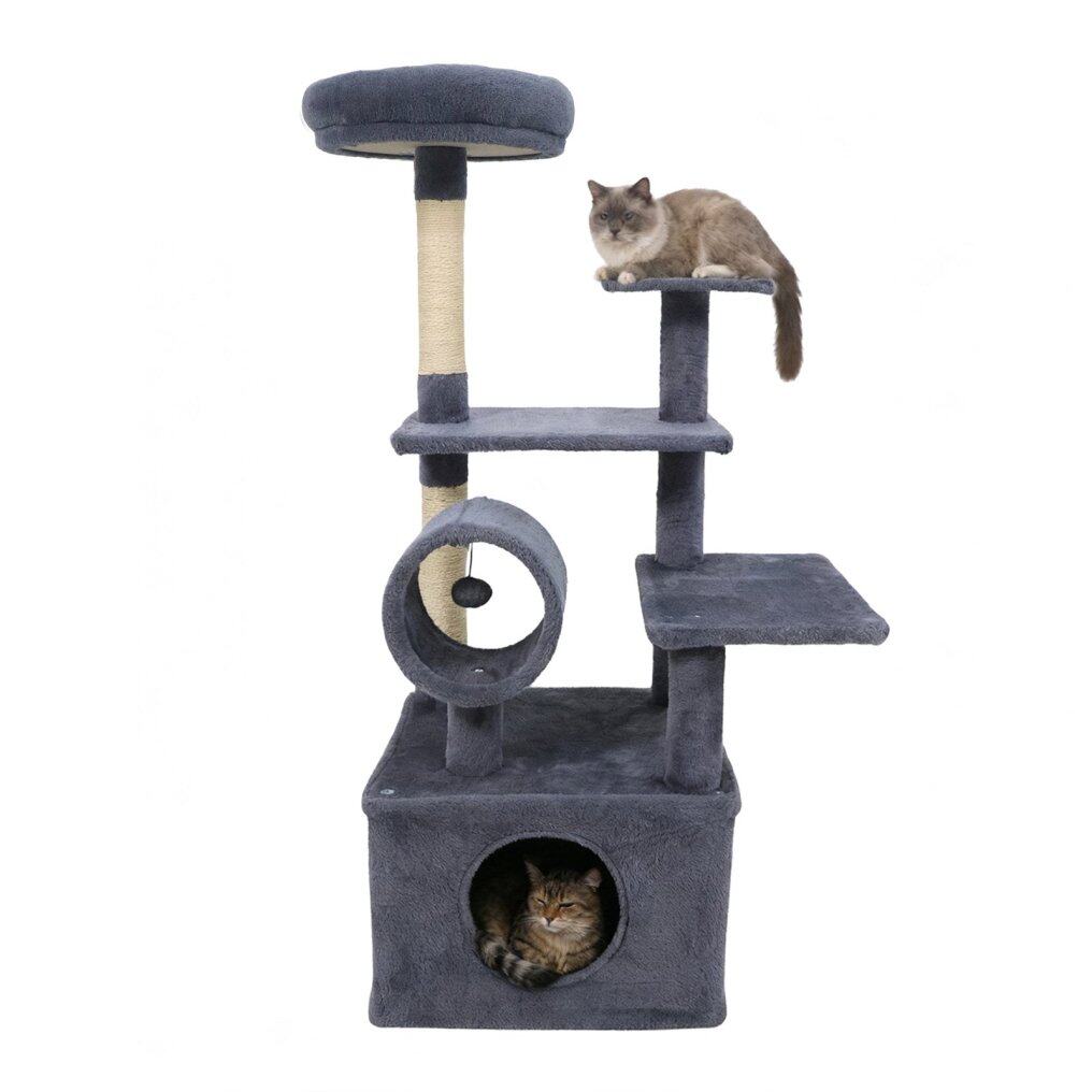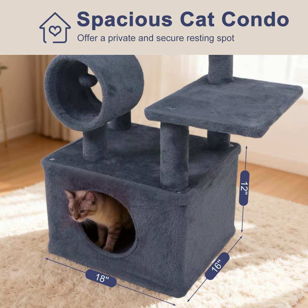 Comfy Resting Spots: This 48" tall cat tree features a spacious cat condo that offers a private hideaway for peaceful naps. And it includes a cozy top perch with thick padding, giving your kitty an elevated view and ultra-soft place to lounge.