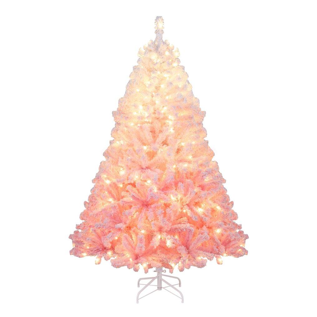 ● Striking Pink Gradient Design: This 5/6/7/8 ft snow-flocked artificial Christmas tree features a stunning gradient color - white to pink, bringing a refreshing twist and elegant touch to the festive season. It stands out with its stylish and eye-catching hues.