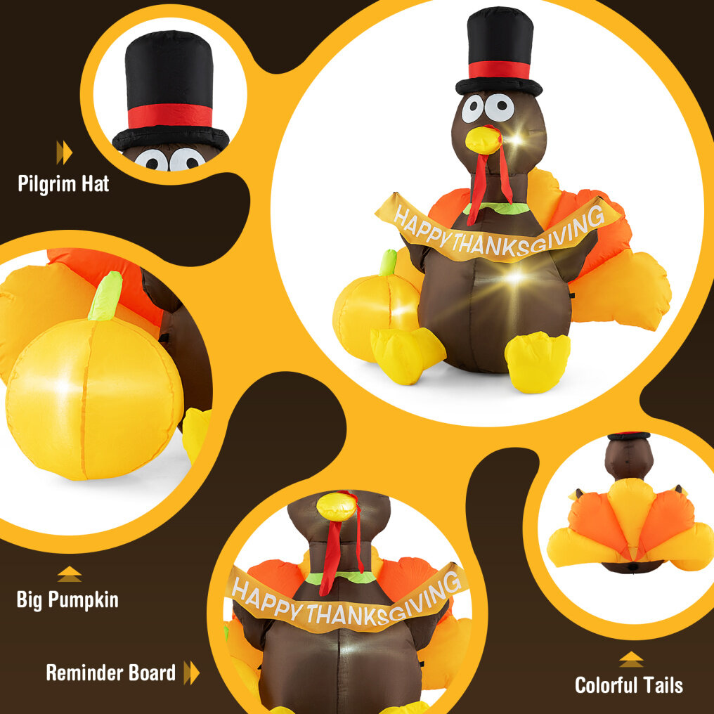 ● Designed with LED Lights: The built-in LED lights in the turkey's head, body, and pumpkin will illuminate your holiday setup. These glowing elements ensure that your Thanksgiving inflatables stand out, offering a warm ambience that enhances the holiday spirit during both day and night.