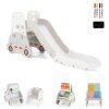 Made with HDPE material, the indoor playground boasts triangular structures for increased stability. Not just a slide, it functions as a climber, an art easel, a bookshelf, and a building block stand, supporting various activities that encourage physical exercise and promote cognitive ability. Accompanied by a comfortable stool, the double-sided magnetic dry erase board unleashes children’s creativity with markers and an eraser included. The extended slide is not only designed with safety zones but can also be easily folded. Presented in a delightful car-themed design, this freestanding slide playset is an excellent gift choice for kids above 3 years old.