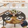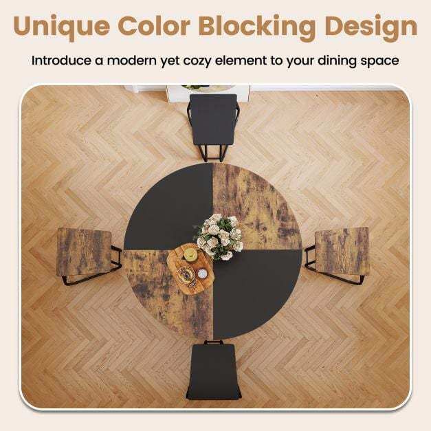 ● Unique Color Blocking Design: This dining furniture includes a 47" round dining table and 4 stools. Moreover, the table top is crafted from 4 contrasting color segments for visual appeal, while 2 brown and 2 black stools perfectly coordinate with the tabletop, creating a chic, harmonious centerpiece for any dining area.