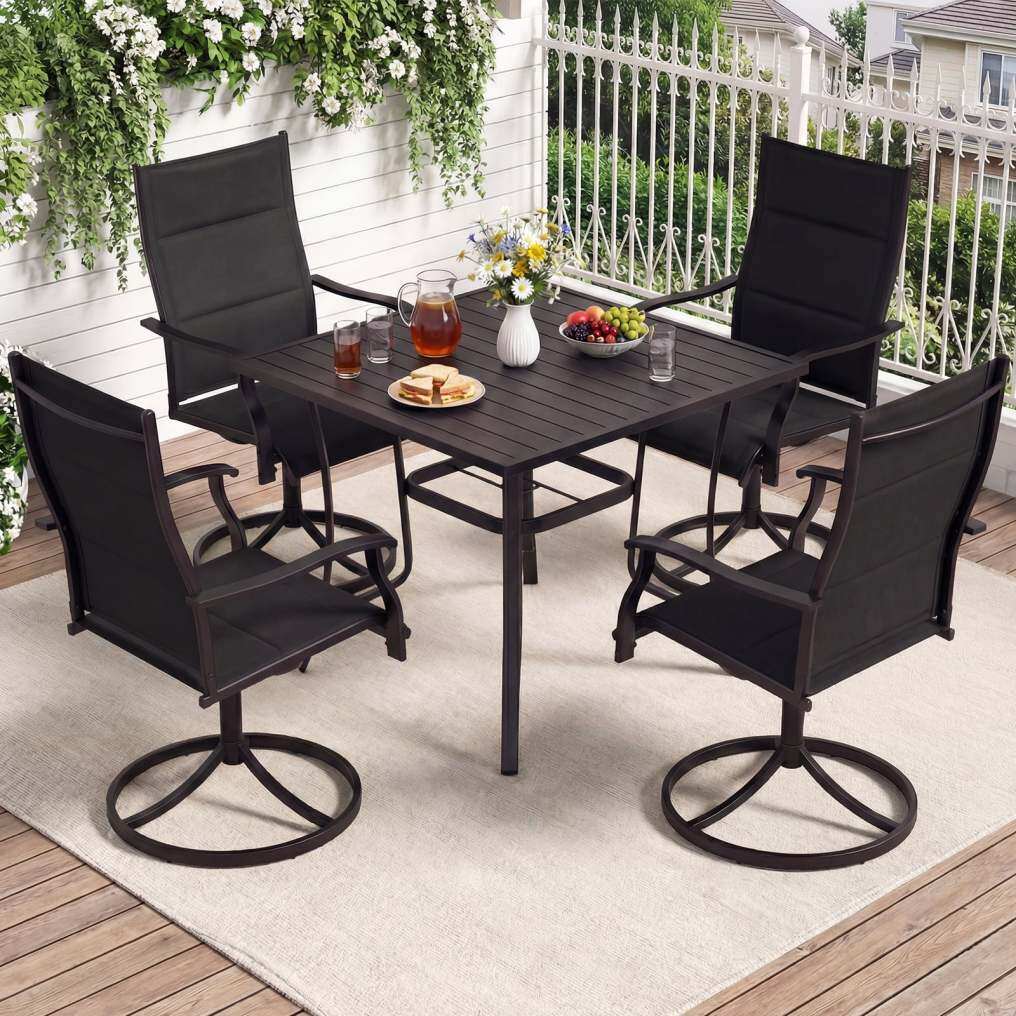 ● Outdoor Dining Set for 4 Persons: Our patio table and chairs set is perfectly sized for 4 people, making it a wonderful addition for hosting a family barbecue or a quiet breakfast in the garden. Dimensions of the square table: 36” x 36” x 29” (L x W x H), dimensions of each chair: 22” x 26” x 39” (L x W x H).