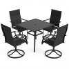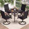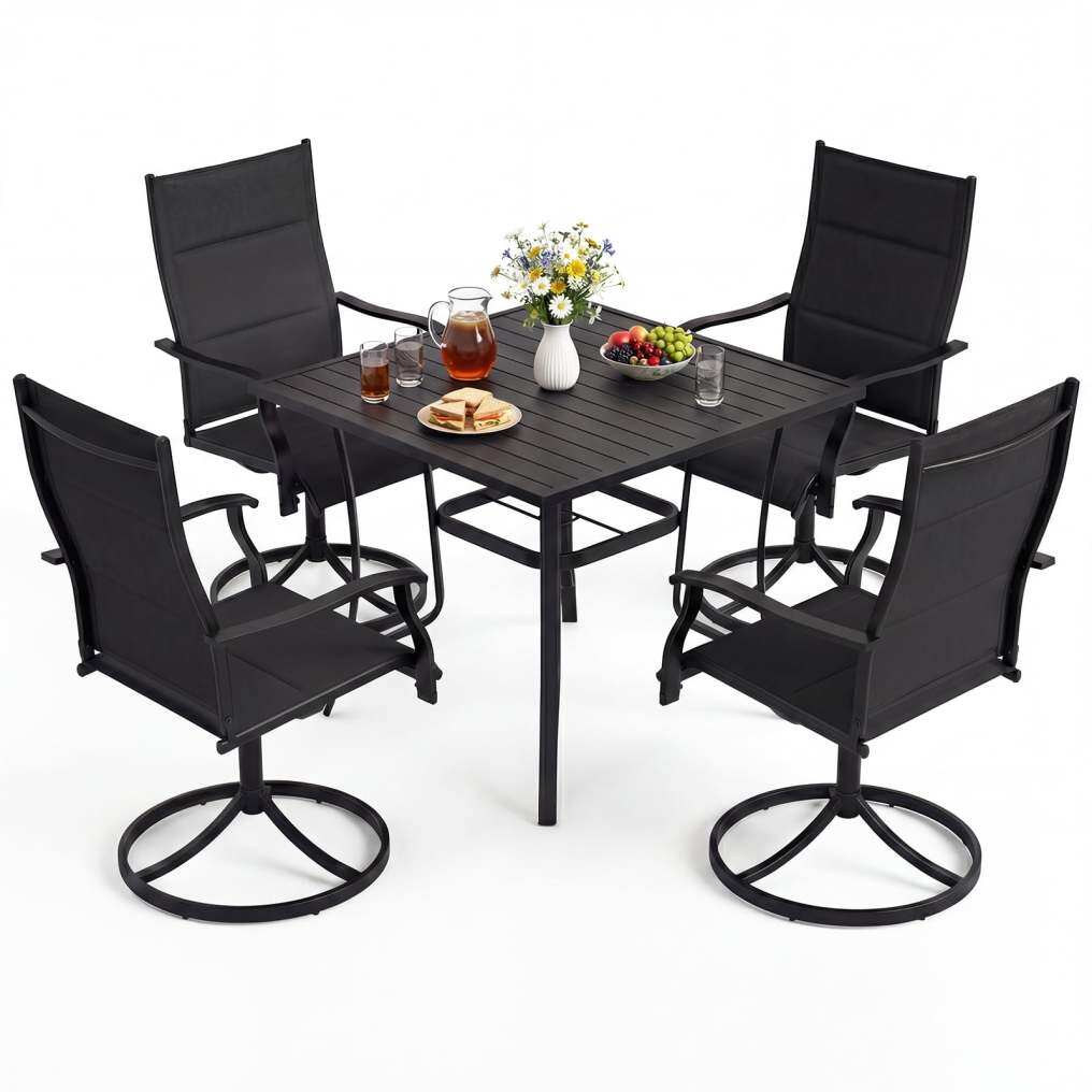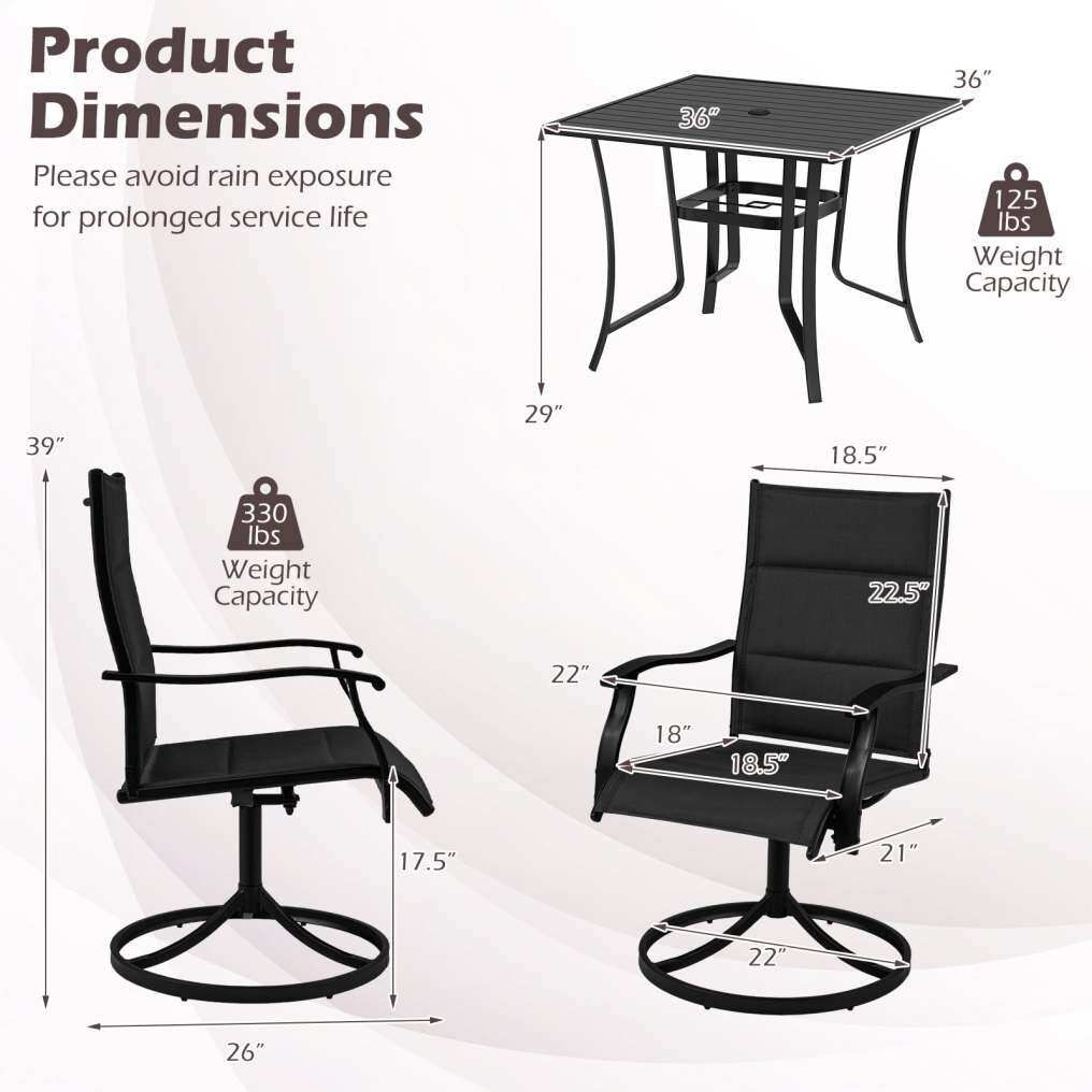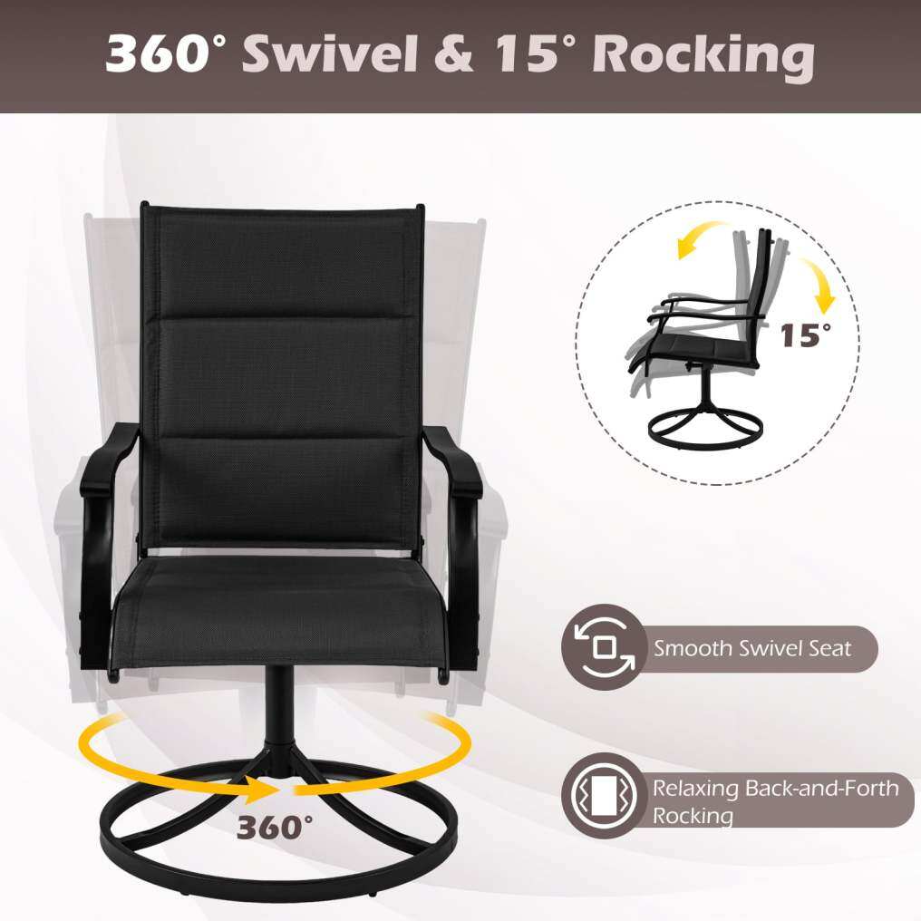 ● 360 Degree Swivel Chairs: This swivel chairs and patio table set includes 360-degree swivel seats with a gentle 15-degree rocking motion, offering flexibility and ease. These features allow guests to engage in conversation without the need to reposition their chairs manually, enhancing the overall dining and social experience.