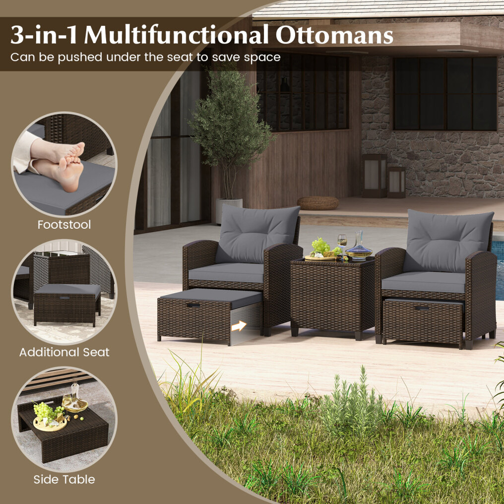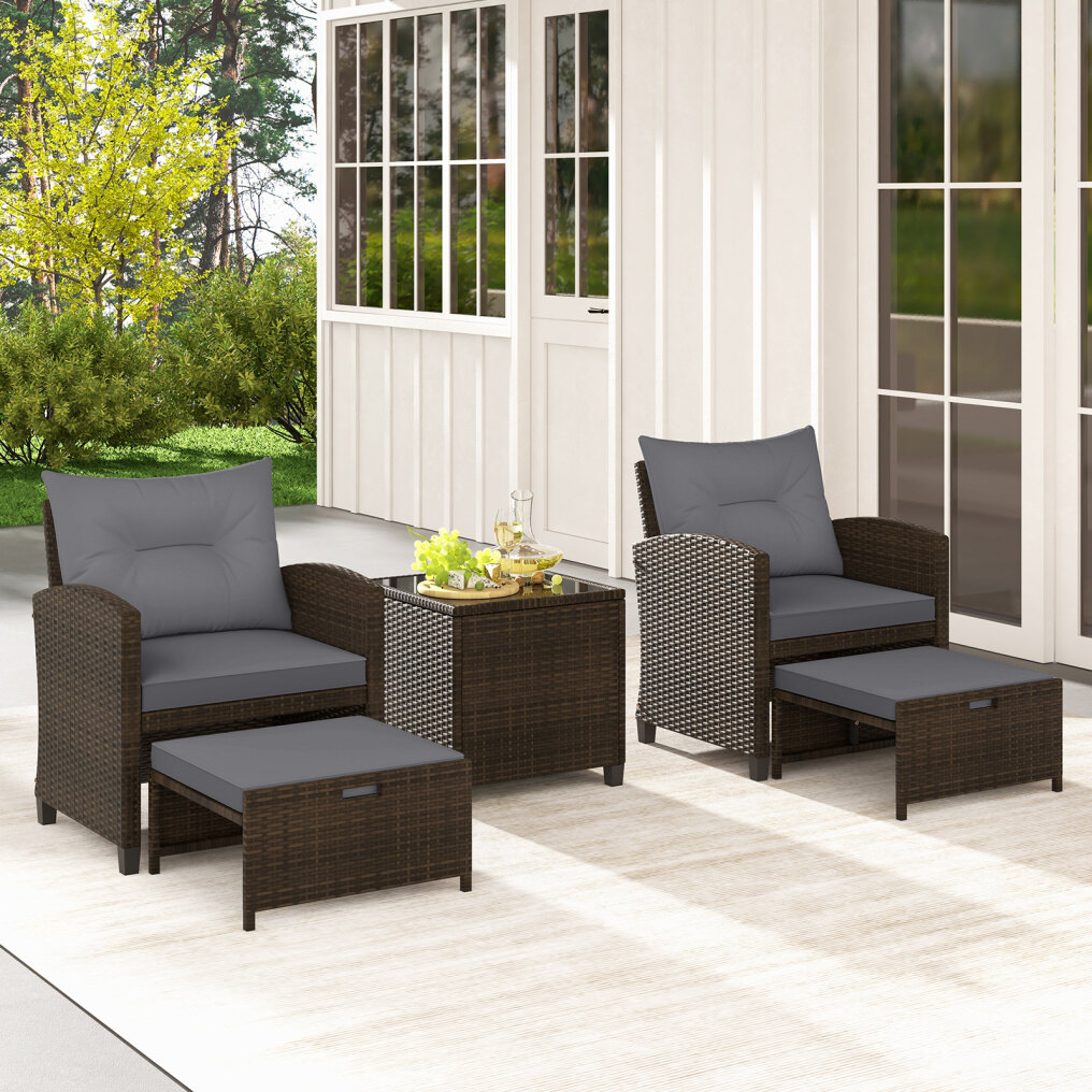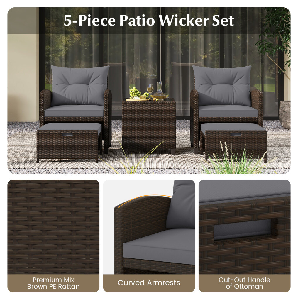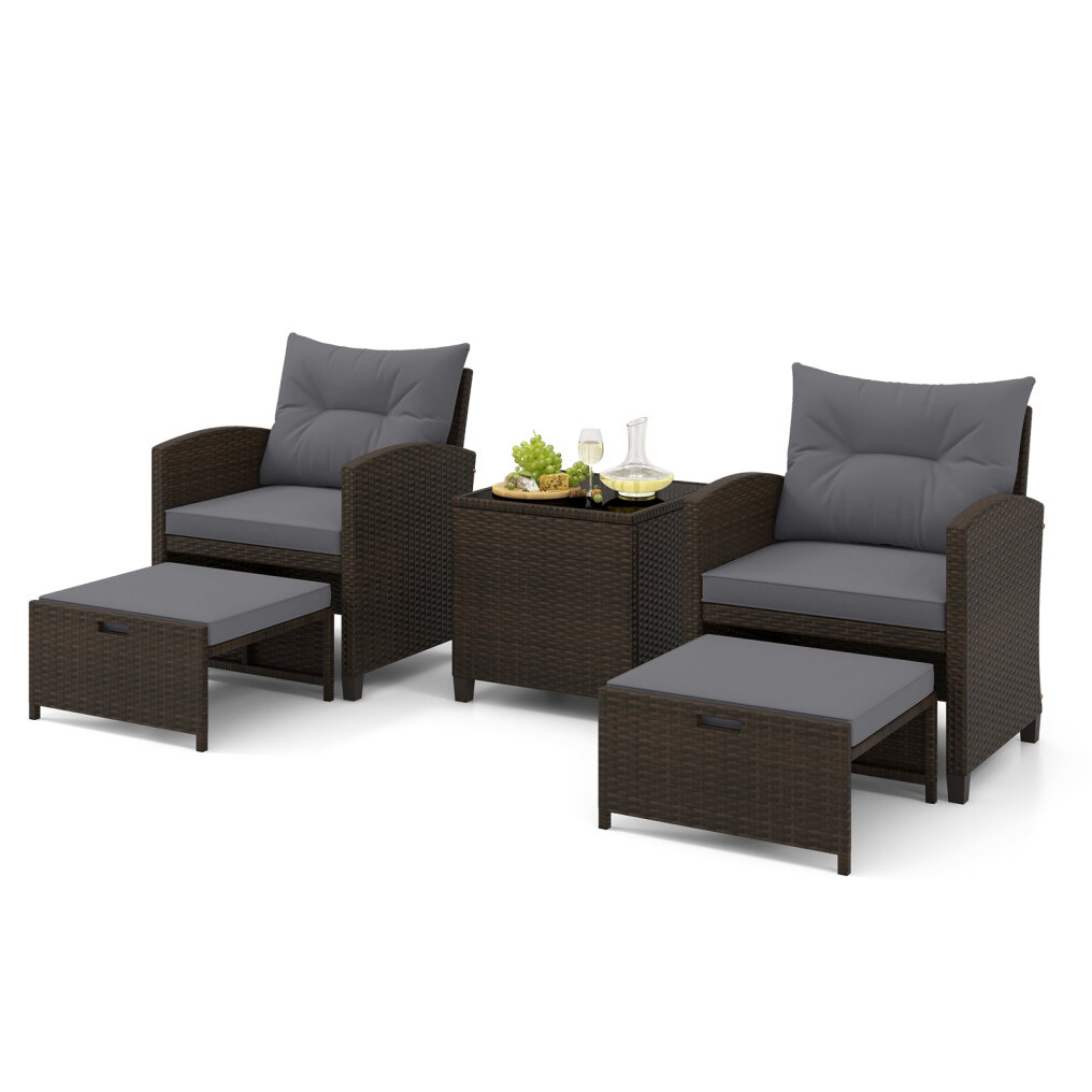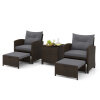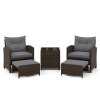 ● Well-Crafted Rattan Surface: This 5-piece patio furniture set boasts well-woven mix brown PE rattan which is long-lasting and anti-fading for long-term use. Moreover, the rattan surface is also elegant to make the whole set eye-catching.