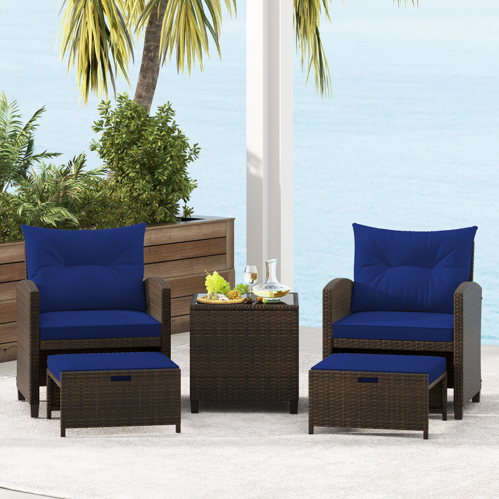 ● Well-Crafted Rattan Surface: This 5-piece patio furniture set boasts well-woven mix brown PE rattan which is long-lasting and anti-fading for long-term use. Moreover, the rattan surface is also elegant to make the whole set eye-catching.