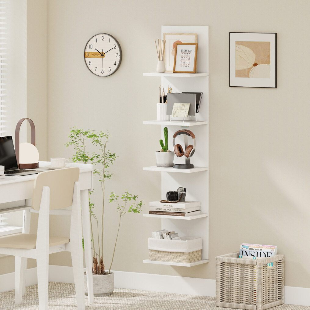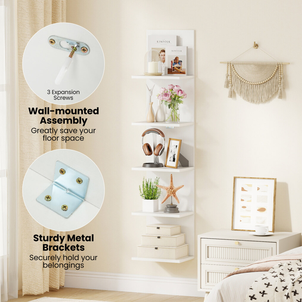 ● Spacious Multi-Tier Storage: Featuring 5 tiers with 9.5" spacing, this floating shelf unit holds books, potted plants, photo frames, decorations, curios, shoes, or lamps. It helps you organize and display your belongings elegantly and efficiently.