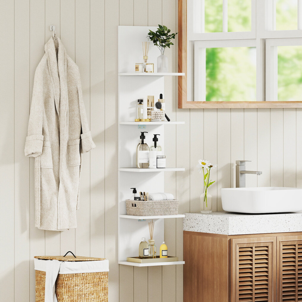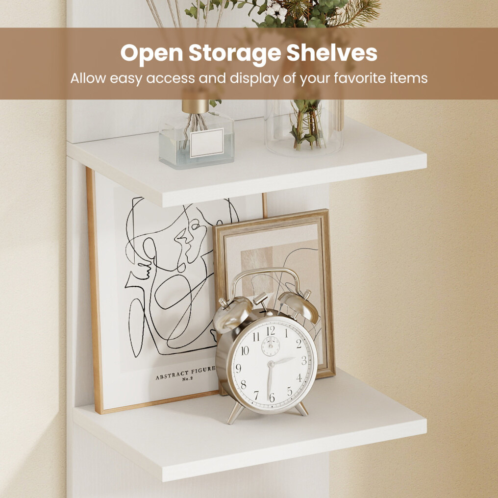 ● Broad Application: Ideal for use in bedrooms, bathrooms, living rooms, and dressing rooms, this floating vertical storage shelf adapts effortlessly to various spaces, bringing organized charm wherever installed.