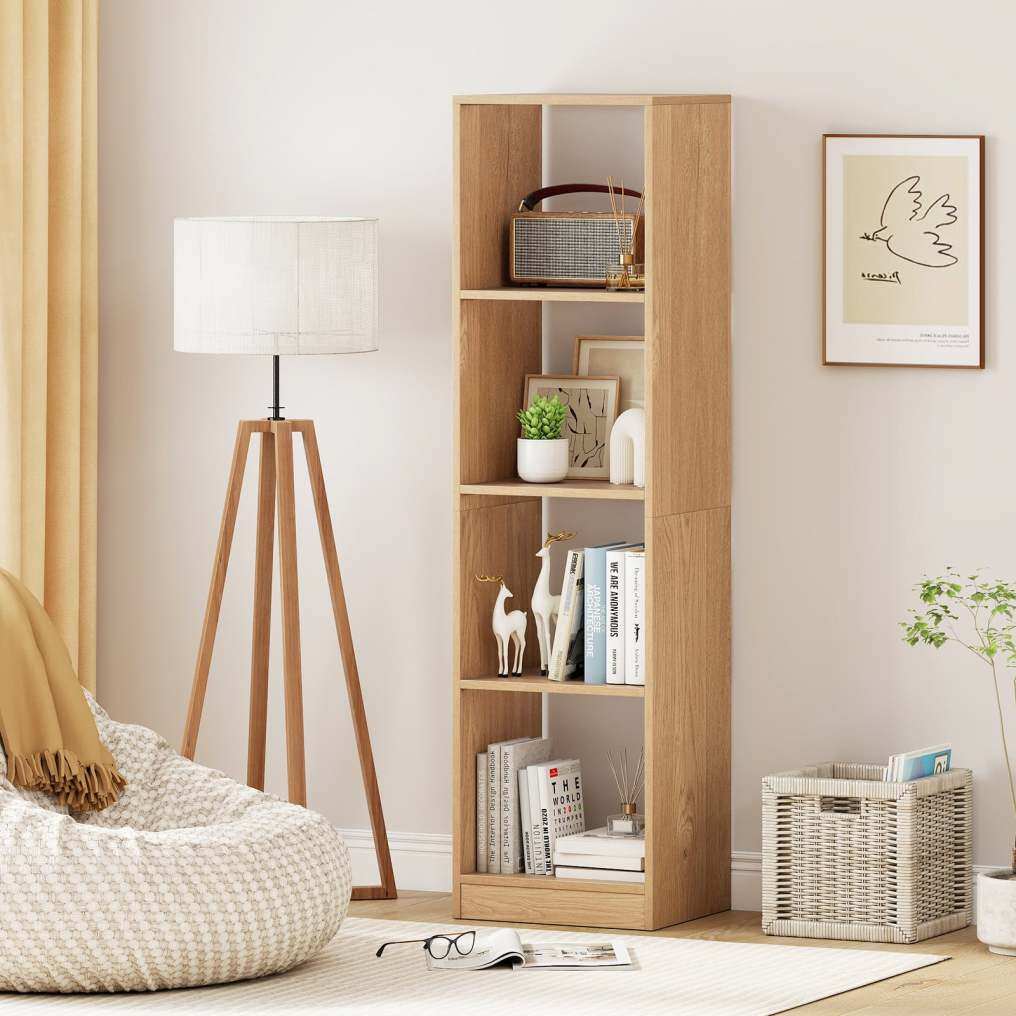 ● Space-saving Narrow Bookcase: The overall dimensions of the freestanding bookcase are 15" x 13" x 56" (L x W x H). With compact size and narrow shape, the 56" tall bookcase comes to make full use of the vertical space while taking up less floor space. It can fit snugly into the room corner to save space.