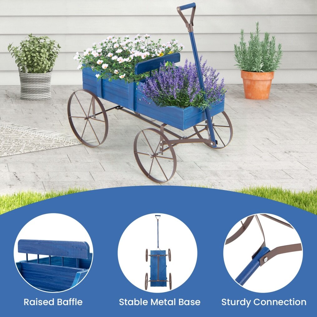 ● Flexible Wheels and Convenient Handle: The decorative planter wagon is designed with sturdy metal wheels for great mobility, thus you can move it anywhere without effort. What's more, the garden cart features a long handle in the front of the cart for easy and flexible veering.