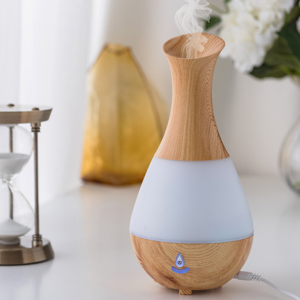 This is our wooden grain essential oils diffuser, which is with nice shape and unique design.