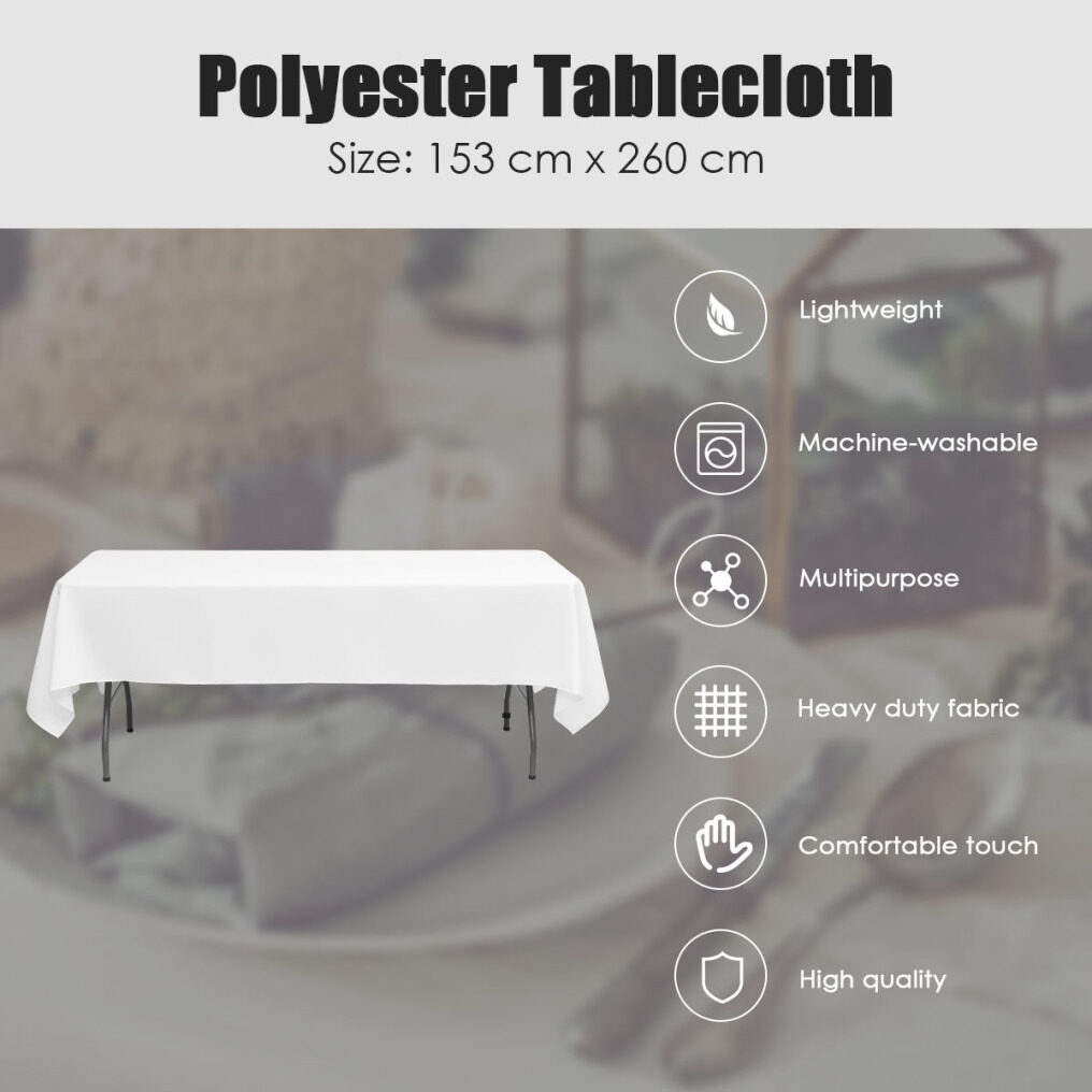 Perfect Decoration: This polyester tablecloth is an ideal decoration for special event, such as wedding ceremony and birthday party, as the tablecloth can conceal all unattractive stuff, say broken table legs or power cords. Moreover, coherent tables increase the atmosphere for any rites or ceremonies.