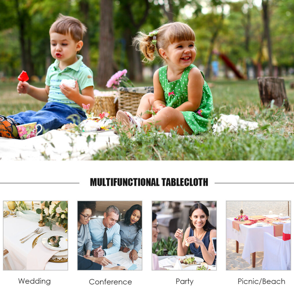 Multifunctional Tablecloth: The tablecloth is multipurpose and can be used in numerous situations for different usage. At special ceremony like weddings, the pure color increase a sense of seriousness, and on conferences, the tablecloth makes the environment more formal and business.
