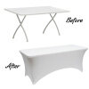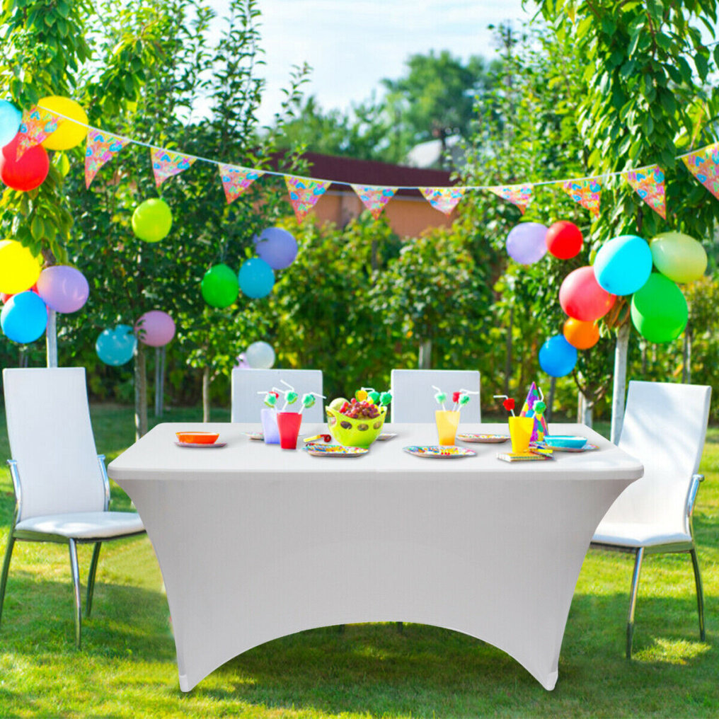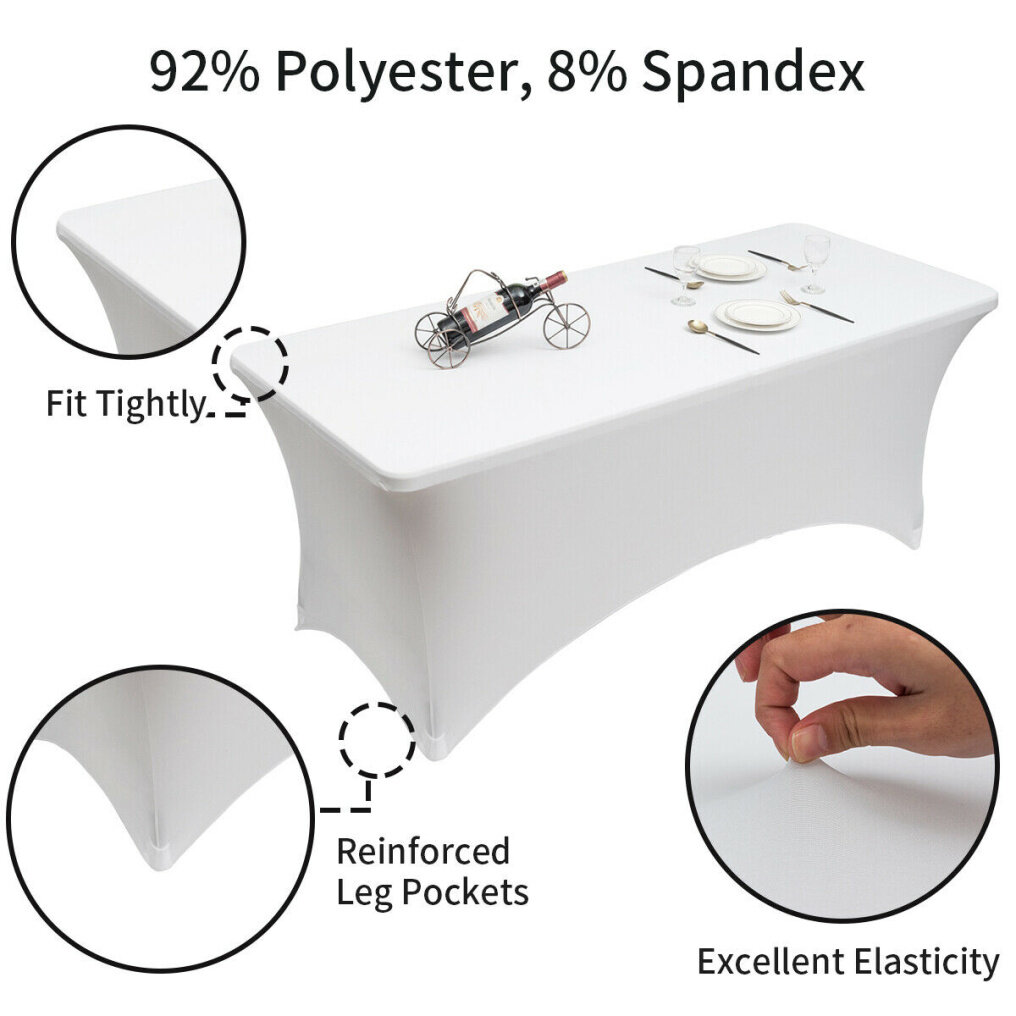 If you want to hold a relieved event or exhibition outside, this stretch tablecloth is your best choice. The unique design turns the boring table into an elegant and clean table, providing a cheap and beautiful upgrade for your event. Compared with the traditional tablecloth, this tablecloth has 4 reinforced foot covers that firmly fix the tablecloth on the table and will not fall under the influence of the wind, providing a stable environment for the event. High-quality materials ensure that the stretch tablecloth features anti-fouling and anti-wrinkle, reducing your cleaning time. Ironing is not required even before or after use, just folding it up and storing it in a storage bag when you're done. Many occasions will be used, such as craft fair display, cocktail event, wedding, hotel reception and more.