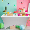 This lightweight and durable tablecloth can be placed anywhere and easily handle the needs of the event.
