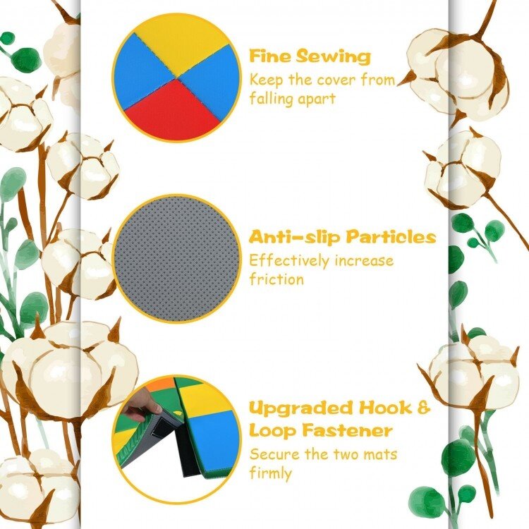 ● Foldable and Space-Saving Play Mat: Designed with convenience in mind, this toddler foam play mat folds effortlessly into a compact 29'' x 29'' square, secured with a hook-and-loop fastener. Whether under the bed, next to the sofa, or in a closet, it fits neatly without taking up valuable space. Lightweight and portable, it’s perfect for families who want a colorful play area that can be stored away in seconds.