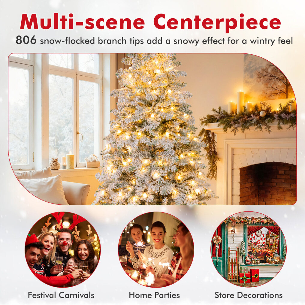 ● Charming & Realistic Appearance: Featuring 616/806 branch tips along with 130/160 twinkle balls, the artificial Christmas tree presents a lush and welcoming look. Additionally, the snow-flocked design beautifully simulates a gentle winter frost.