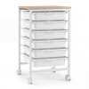 ● Organized Convenience: Featuring 6 spacious drawers, this rolling storage cart easily holds office supplies, stationery, craft supplies, building blocks, cosmetics, and more. It helps keep your essentials neatly organized and within quick reach.