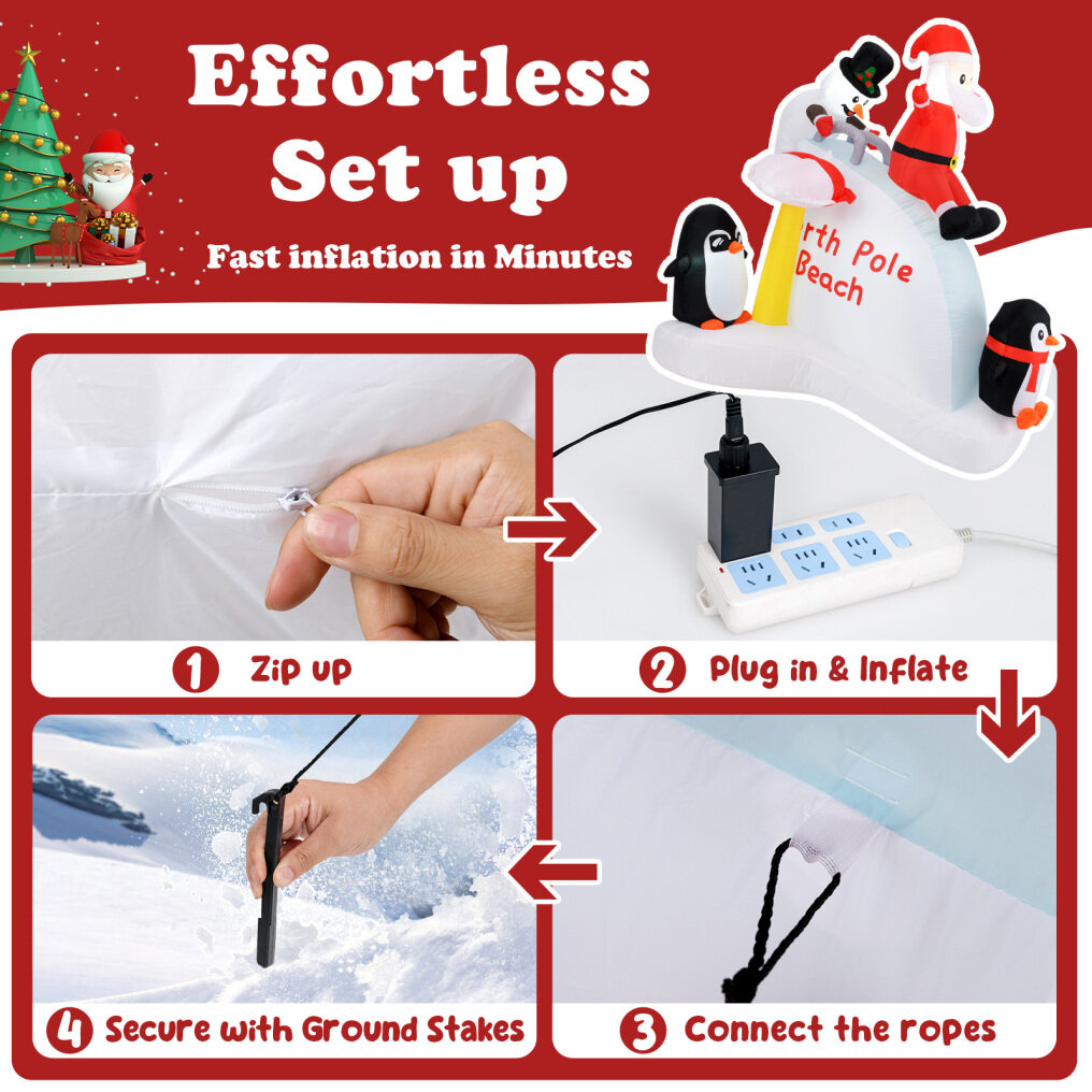 ● Effortless Set up: Simple to set up through zip it up and plug it in, this 6 ft tall inflatable Christmas decoration is ready to spread holiday cheer in minutes. For wind stability outdoors, please be sure to connect it with the ropes, and secure with ground stakes.