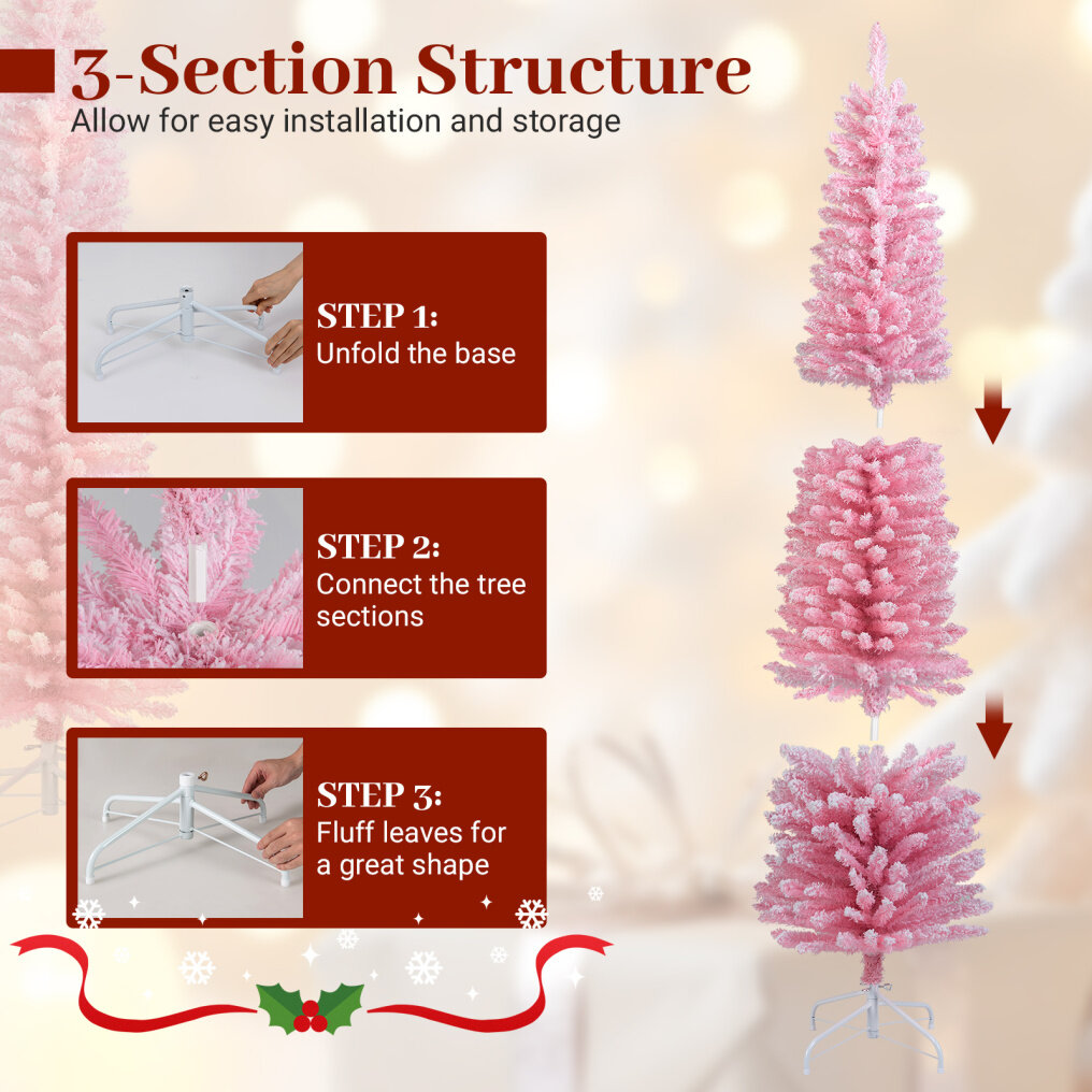 ● Lush Pink Foliage: Celebrate the festive spirit with a unique twist! The 6 ft Christmas tree boasts 460 flocked pink branch tips, creating a lush, vibrant backdrop for your holiday decorations. This standout tree adds a joyful pop of color to traditional and contemporary settings, ensuring a merry and bright atmosphere in your home.