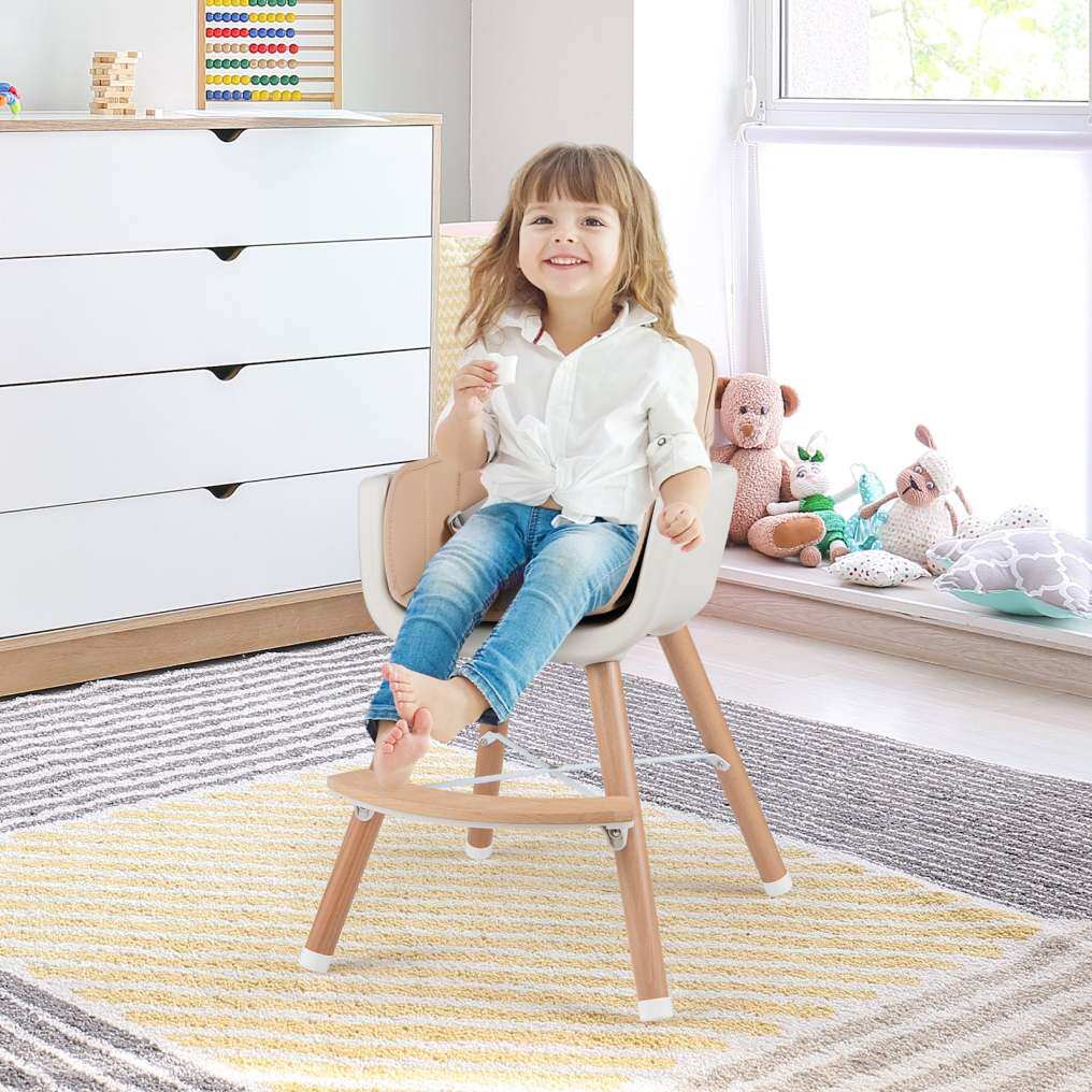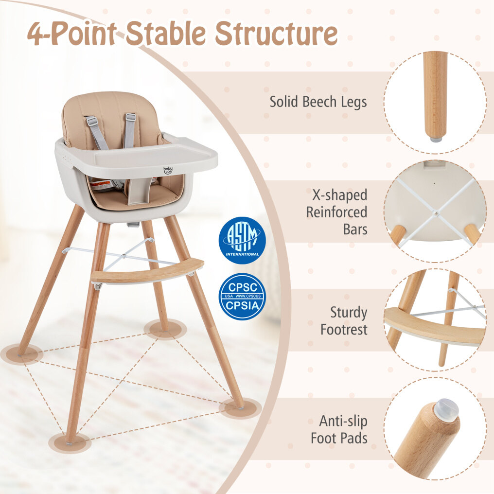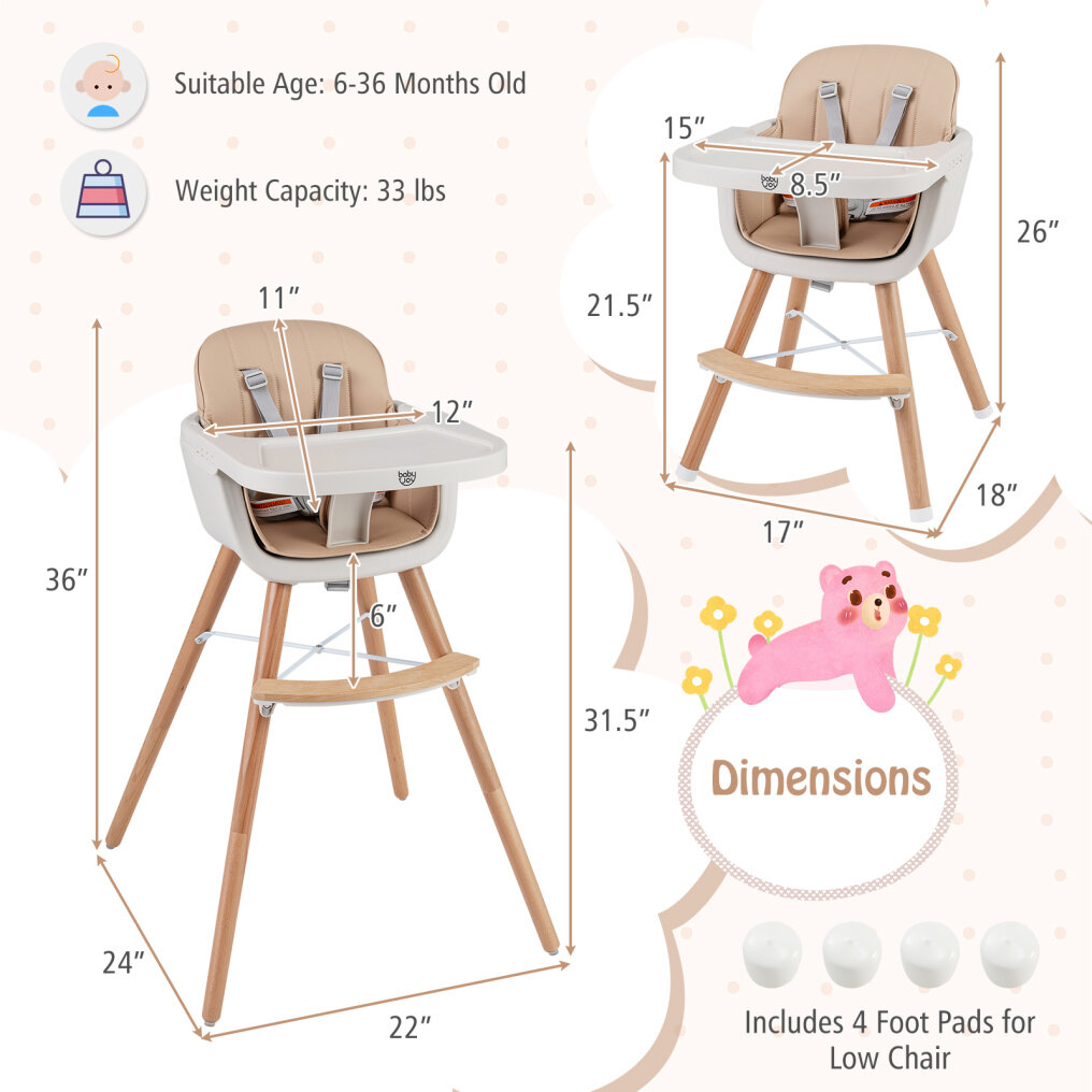 6-in-1 Convertible Wooden Highchair with Safety Harness and Adjustable Legs-Light Brown