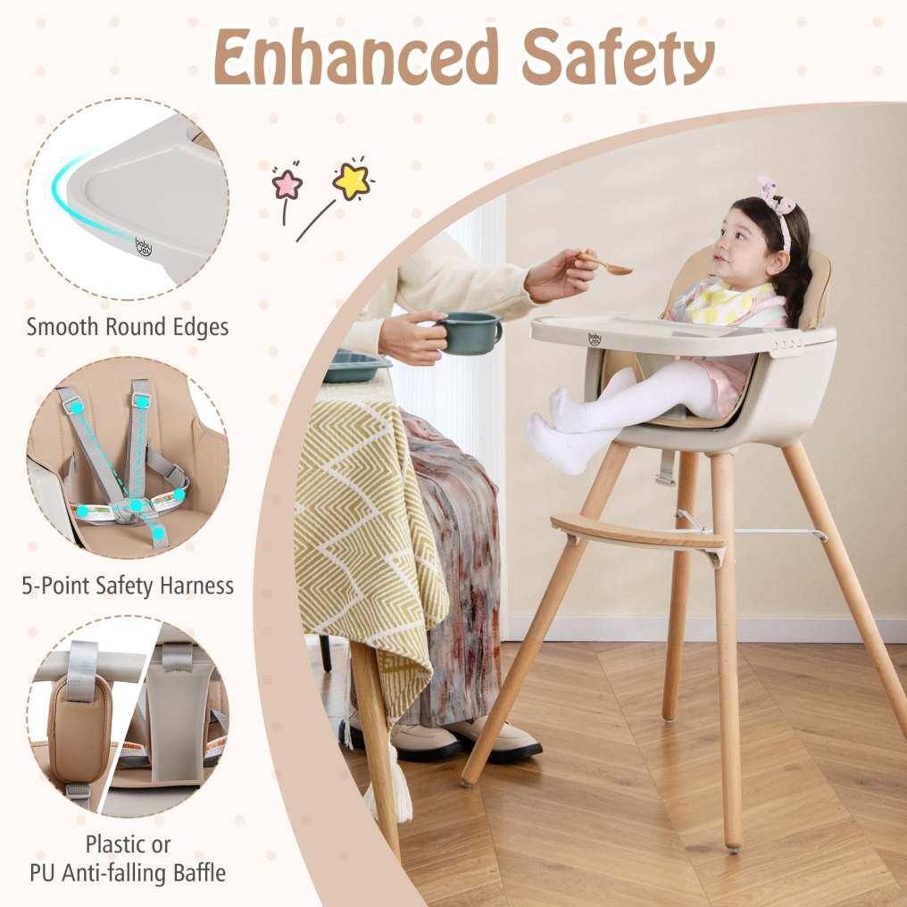 • Considerate & Safe Features: Equipped with a 5-point safety harness and smooth round edges, this convertible baby high chair keeps your baby secure during meals. In addition, you can choose to install the plastic or PU anti-falling baffle for enhanced safety.