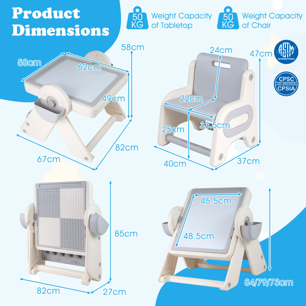 ●Height-Adjustable Art Easel: The play table can be easily converted into a kids easel with 3-level adjustable height. Your little one can adjust the easel height from 29” to 31” or 33” for sitting or standing drawing. Plus, the adjustable height also help kids of different heights find the optimal drawing position.