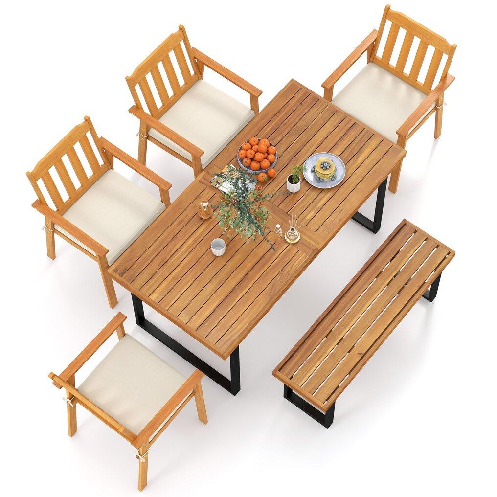 ● Acacia Wood Structure: Constructed from sturdy acacia wood, the dining set is sturdy without compromising natural charm. Plus, the slatted tabletop and seat ensures ease of upkeep. To extend its lifespan, regular application of wood oil (not included) is recommended. Please avoid leaving it outdoors in the rain for long service life.
