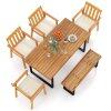 ● 6 PCS Dining Table Set: The patio dining set includes a spacious table 63” x 32” x 30” (L x W x H), along with 4 comfortable armchairs and a matching bench, allowing up to 6 people to dine together. Therefore, it is perfect for both intimate family meals and larger gatherings with friends.
