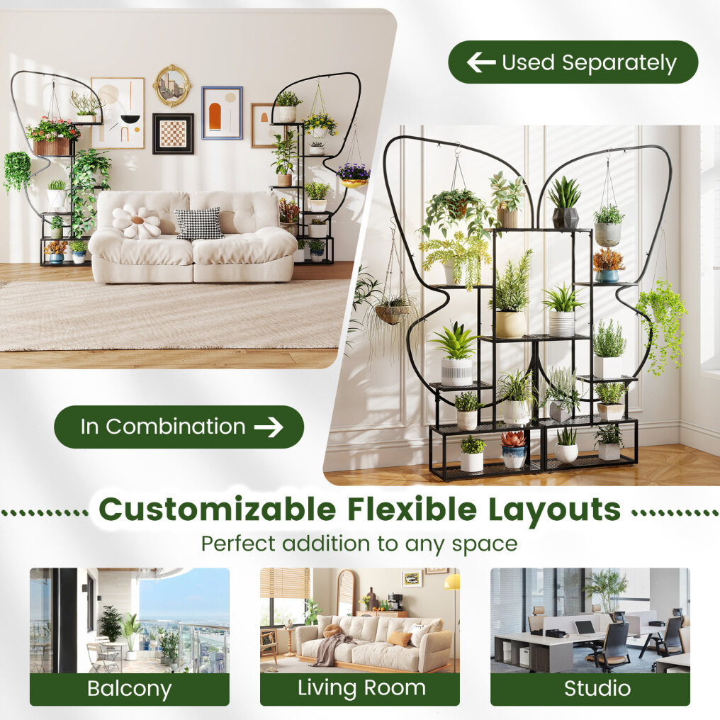 Creative Butterfly Shape: The set includes 2 curved-shaped plant stands that can be combined to form an elegant butterfly shape, adding a touch of romance and whimsy to your living space. 2 stands can be used together as a charming centerpiece or separately for individual displays.