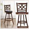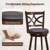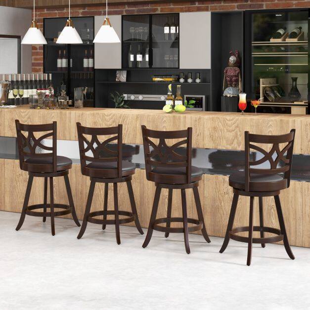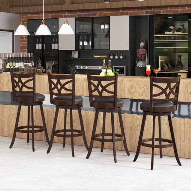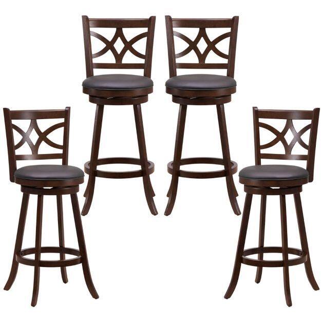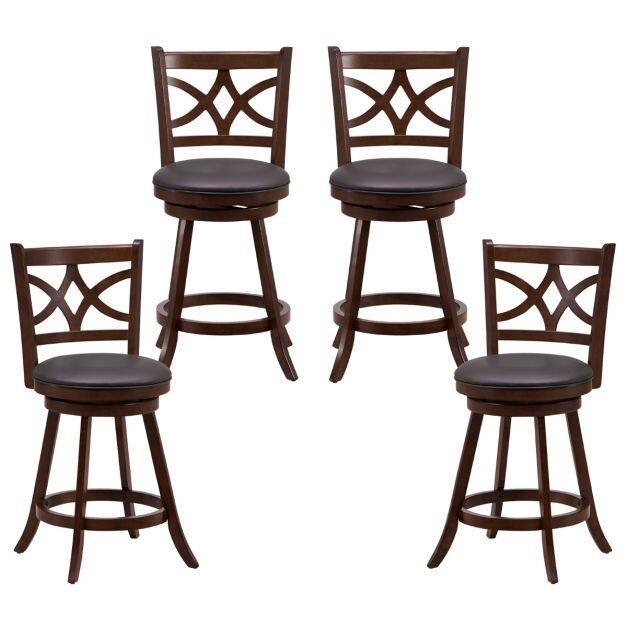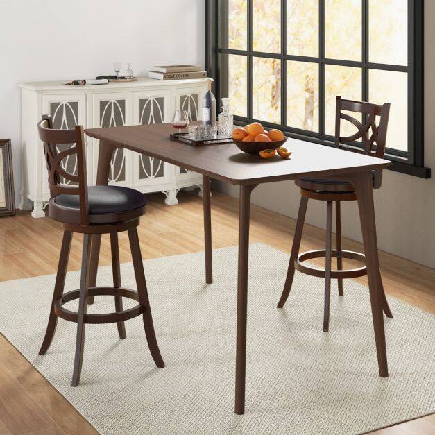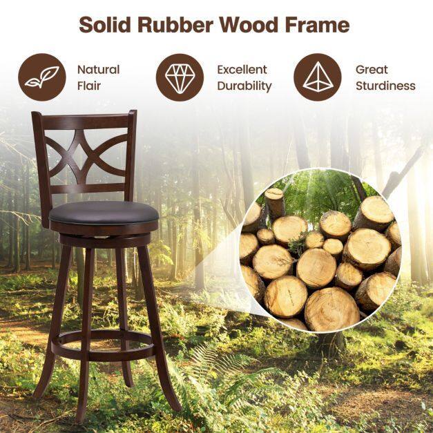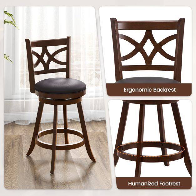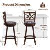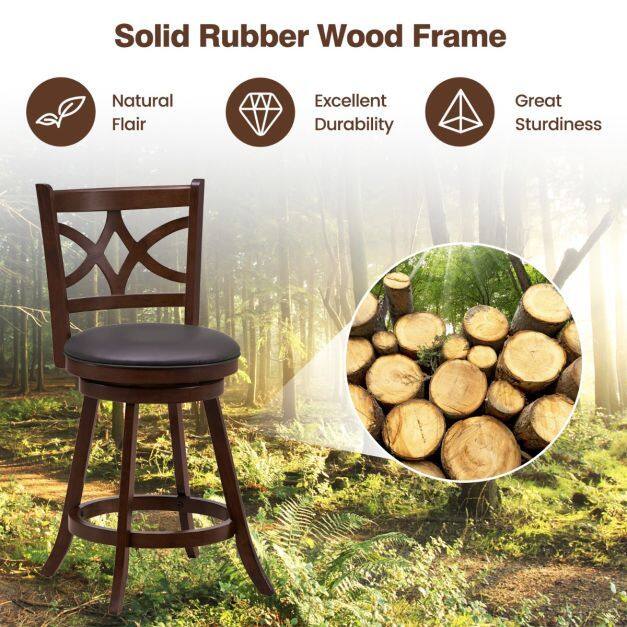 Crafted from solid rubber wood, the bar stool set is designed with sturdy and stable support and is not easy to crack. 360° swivel design can maximize your comfort and give you or your guest the freedom of rotation for easy communication. Ergonomic design with curved backrest, sponge-filling seat, and footrest provides more support for your body while sitting, making it relaxing and safe at the same time. A great combination of elegant simple beauty and versatility to add elegant style to your room! If you are looking for a bar stool set like this, do not hesitate to place an order!