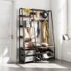 | durable structure & easy maintenance | made of premium steel material, our hall tree is resistant to rust and abrasion, ensuring long-lasting service life. premium-engineered wood materials can withstand daily wear and scratch. a solid steel frame with stable legs helps it to stay steady on the ground. in addition, waterproof surface guarantees easy maintenance. |