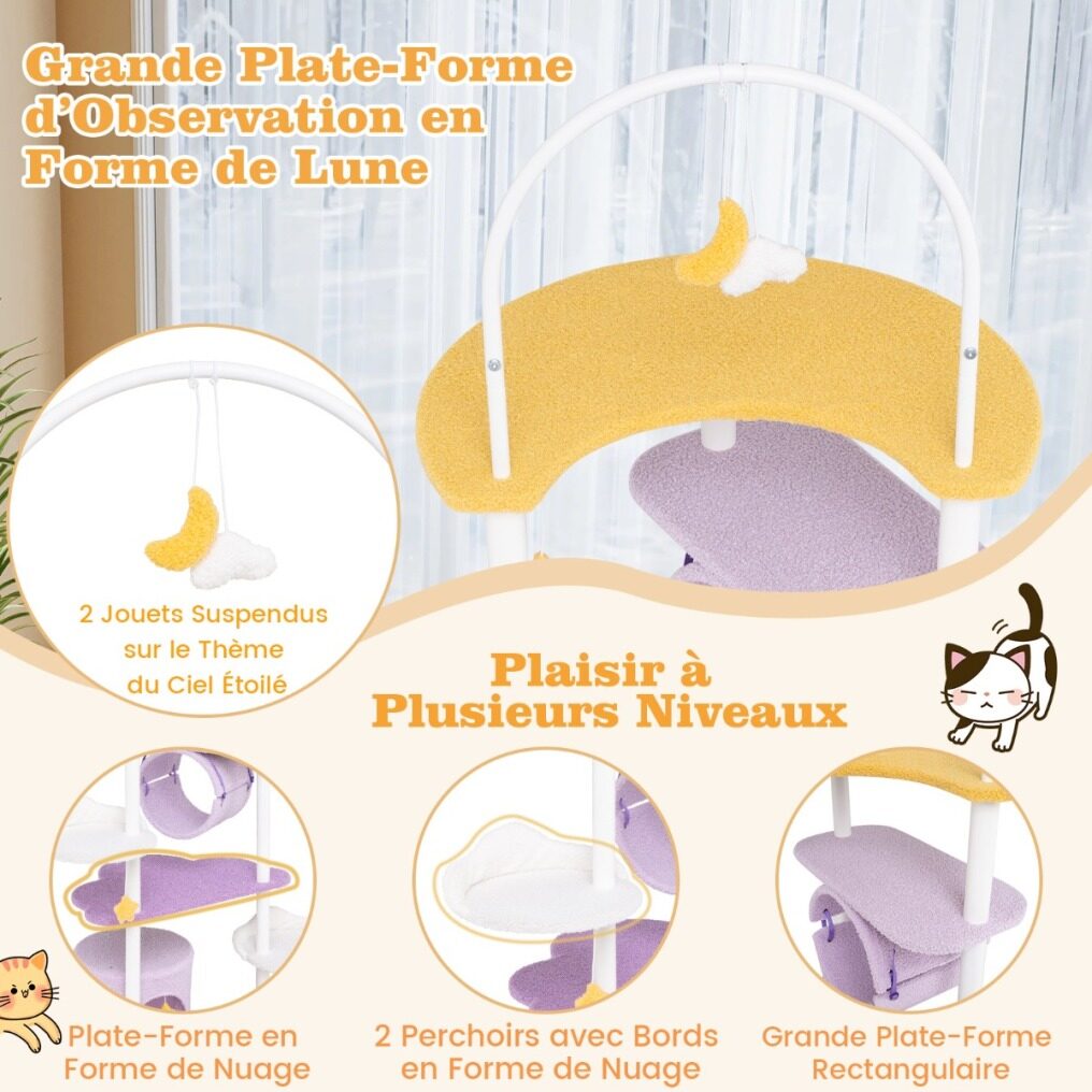 ● Attractive Appearance: This tall cat tree incorporates many celestial and sky elements that will captivate your feline friends instantly. Additionally, the vibrant color scheme of the cat tower will add a touch of brightness to your space.