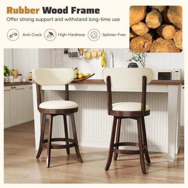 ● 360° Smooth Swivel: Each barstool features a premium swivel base that rotates a full 360°, allowing for seamless movement. The swivel design reduces stiffness from prolonged sitting, which is also convenient for multitasking in kitchen or workspace.