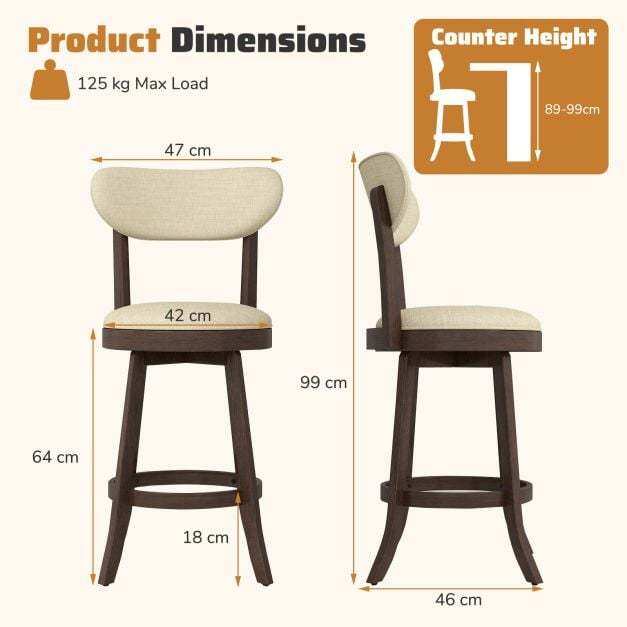 ● Comfy Upholstered Seat: Experience ultimate comfort with the padded design of the stools. The seat and back consist of breathable linen fabric cover, elastic sponge filling, premium MDF and a non-woven fabric, ensuring comfort and durability.
