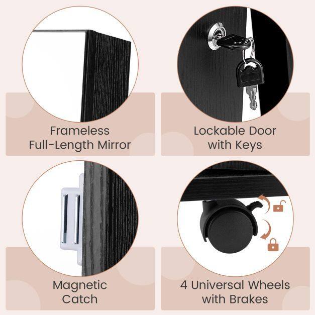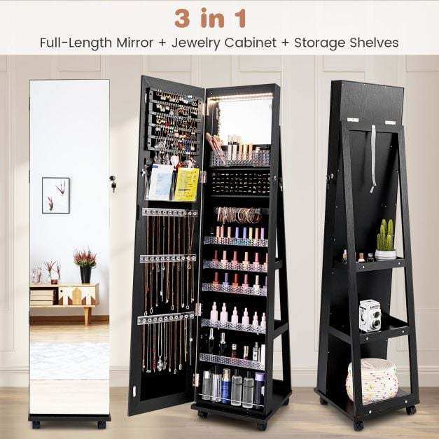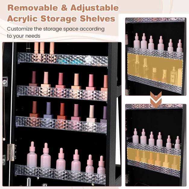 ● 3 in 1 Space-Saving Design: This storage organizer combines a frameless full-length mirror, a jewelry cabinet and storage shelves together, which helps you to maximize space efficiency. It is suitable for small bedrooms, cloakrooms, apartments, dorms and more.