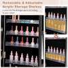 ● User-Friendly Features: The acrylic storage shelves can be set into different heights to fit the height of item, which allows you to customize the storage space according to your needs. 4 universal wheels with brakes provide effortless movement and enable easy access to the storage shelves backside.