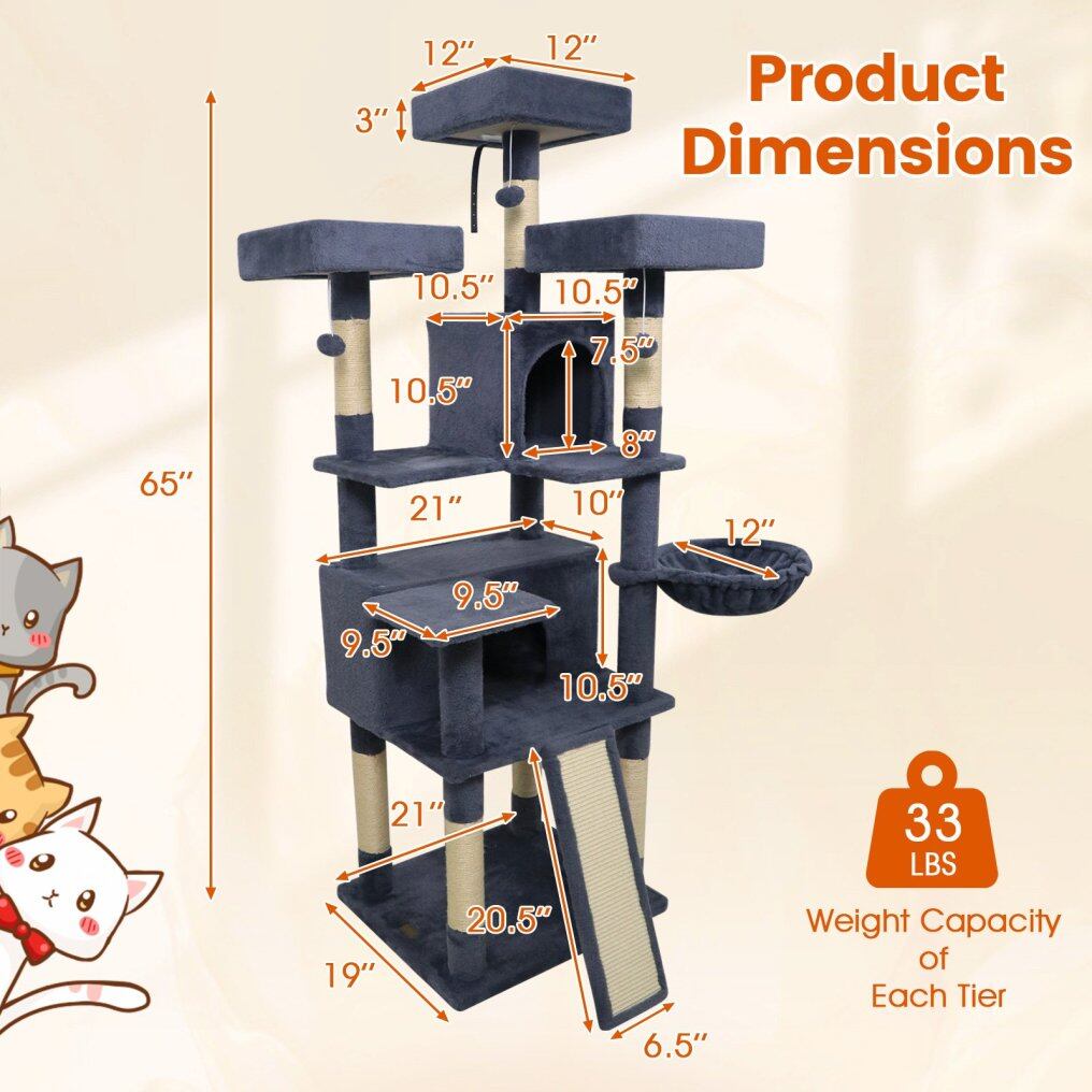 ● Comfy Living Areas: The multi-level cat tree comes with 2 large cat condos, which offer a comfy spot for your cats to lounge and sleep. Plus, the wide jumping platforms and a cozy cat bowl add more comfort to your cats, while the 3 hanging balls provide entertainment and exercise for cats.