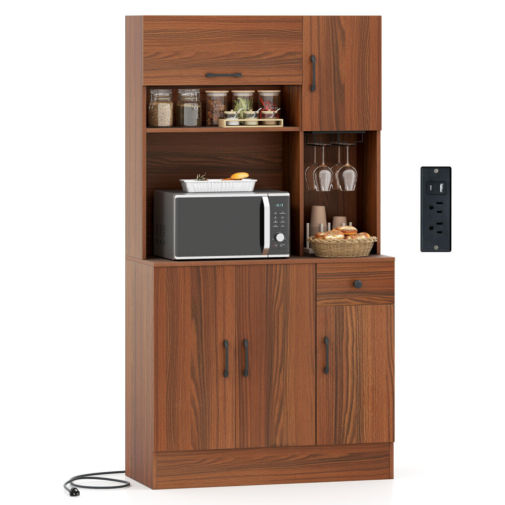 ● Integrated Charging Station: This pantry cabinet features a built-in charging station that is easy to charge microwave, coffee maker and other appliances. There are 2 outlets, 1 USB port, and 1 type-C port to keep electronics powered up and within reach.