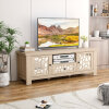● Retro and Elegant Appearance: The retro TV cabinet features mirrored doors with decorative pattern, together with matching antique style handles and rustic wood grain, giving a retro and elegant appeal. Meanwhile, the mirror is made of durable acrylic instead of fragile glass, thus to offer a long service life.